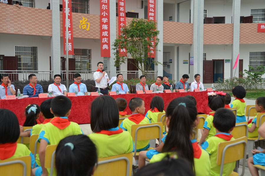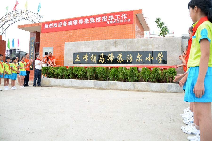 典禮接近尾聲,在鞭炮聲聲中,在林總的注視下,幾位志愿者代表公司為馬蹄蘇泊爾小學(xué)揭牌。鞭炮聲連綿不絕,代表了村民和師生們因有了新學(xué)校而高興的心情。