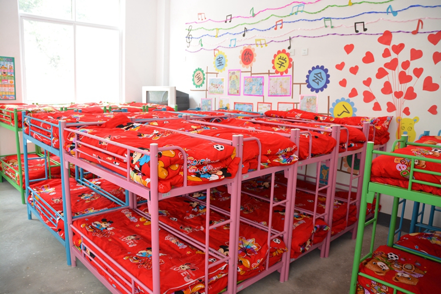 孩子們的教室、床鋪、圖書室、廚房。