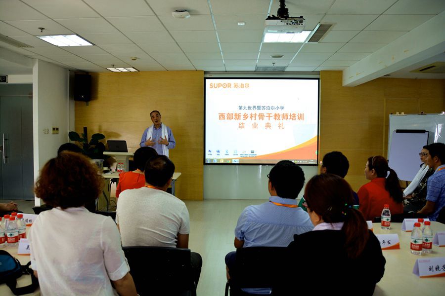 5月12日,戴總出席了本次教師培訓的結業典禮。在致辭中,戴總結合蘇泊爾自身從一家海島小工廠成長發展至如今行業領導品牌的經歷,鼓勵蘇泊爾小學的校長及老師們在不斷改善學校硬件設施的同時,發揚自強不息的精神,努力提高學校的辦學水平。“用心”做事成就了如今蘇泊爾的行業地位,戴總對蘇泊爾小學的每一位教師提出了深切的期許,“用心”做好鄉村教育,辦好蘇泊爾小學。第一所蘇泊爾小學——青海互助蘇泊爾小學的吳淑文老師作為教師代表分享了自己的培訓體會,“有作為才有地位”,長坑小學全體教職工每日從早到晚幾無歇息的敬業精神和學生快樂健康的學習氛圍是吳老師決心學習和追趕的榜樣。
