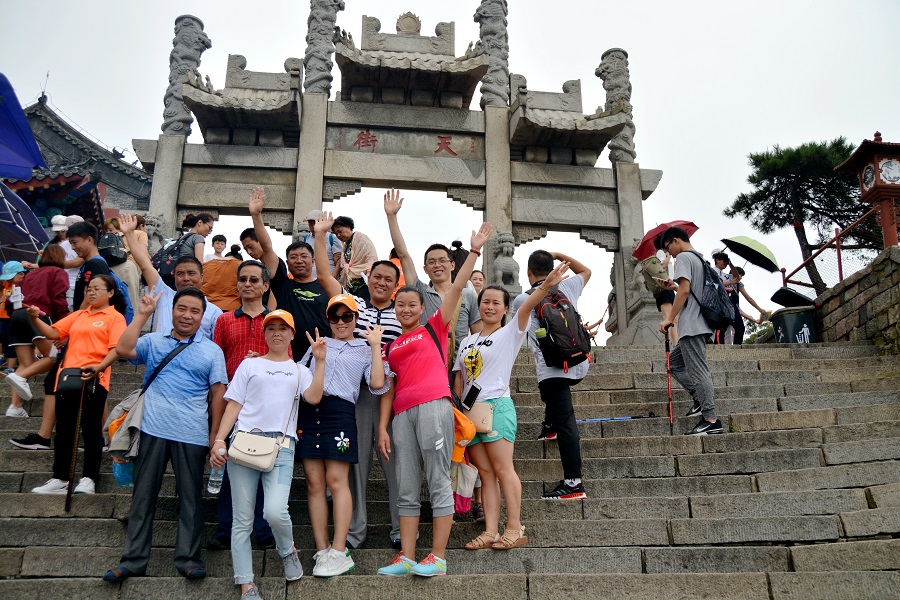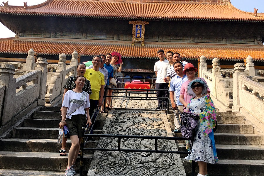 游學(xué)的第二站—泰山,世界文化與自然雙重遺產(chǎn),居于群山之中,細(xì)品晨之薄霧,老師們感到無比的暢快和滿足。攀登到最險峻的十八盤時,老師們依舊沒有氣餒繼續(xù)前行,經(jīng)過大約1600級臺階,登上泰山最高天門南天門,老師們親自感受到詩仙李白“天門一長嘯,萬里清風(fēng)來”的遼闊心境,經(jīng)壯觀的美麗天街以及碧霞祠之后,老師們陸續(xù)登上玉皇頂,泰山的最高峰,體會詩圣杜甫“會當(dāng)凌絕頂,一覽眾山小”的恢弘意境。