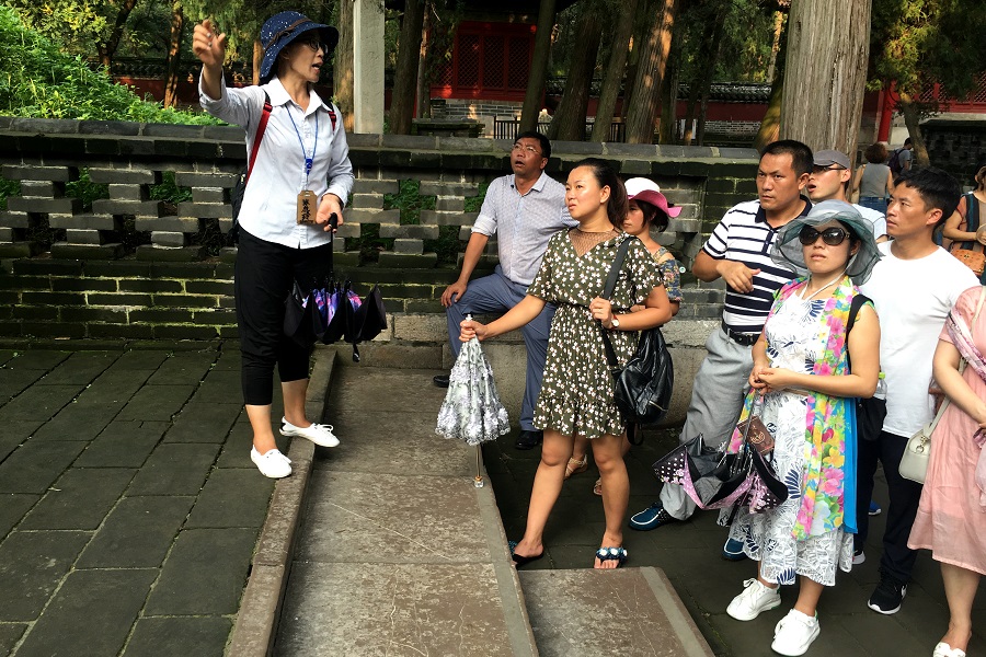 游學(xué)的第三站是儒家圣地曲阜,作為中華傳統(tǒng)文化的主干與核心,儒家思想和文化早已滲透到中華民族乃至世界的人文血脈中。過萬仞宮墻,走圣人之門,至圣林里拜先師,行走在孔廟、孔府與孔林,如同在觸摸一段段久遠(yuǎn)塵封的歷史,又似乎能與先賢對話,感受他那博大深邃的思想光輝。老師們每走一處都仔細(xì)聆聽一個個與景觀文物相關(guān)的歷史故事,如此壯觀的先賢府邸、墓地和廟宇,老師們參觀時不禁唏噓不已。