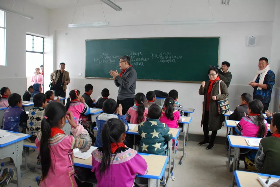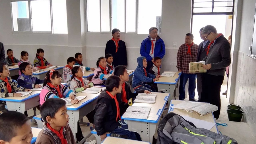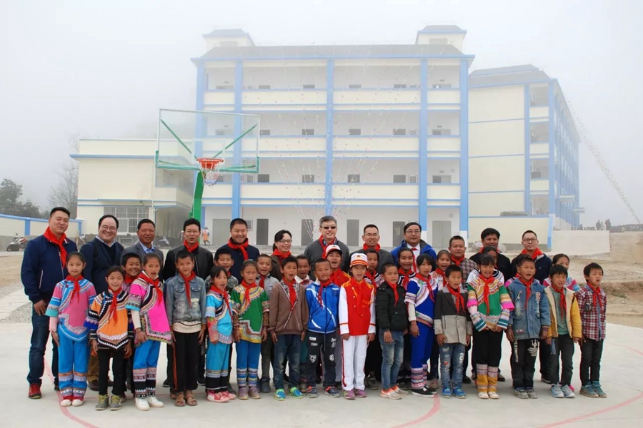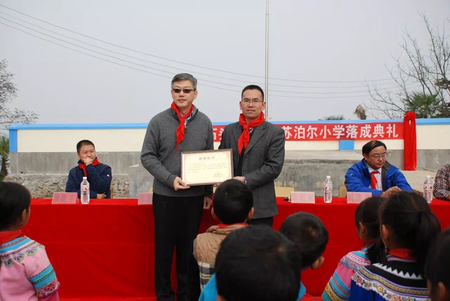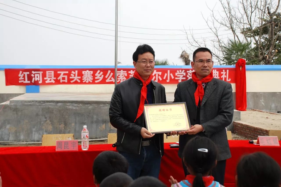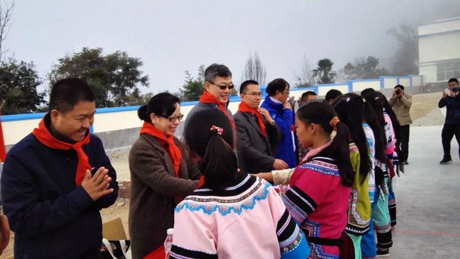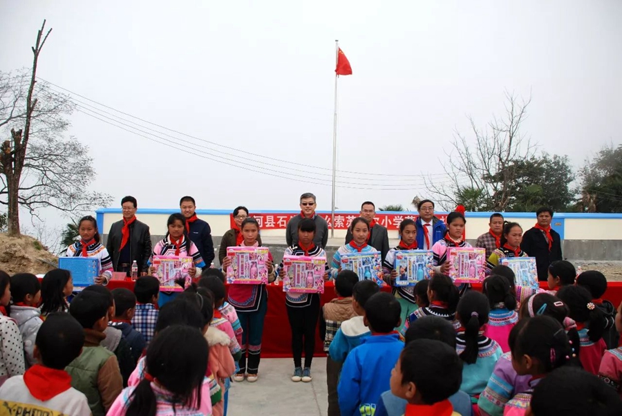 公司蘇總、碩源基金會(huì)陳秘書(shū)長(zhǎng)、云南經(jīng)銷商伙伴浩帆公司周總、趙總一行,穿越綿綿大山,來(lái)到么索村,共同慶祝紅河縣石頭寨鄉(xiāng)么索蘇泊爾小學(xué)落成。