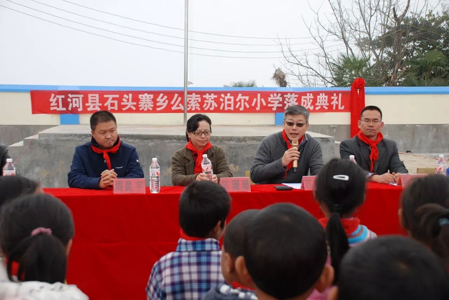 六年級(jí)的哈尼族男孩代表全體學(xué)生發(fā)言,這個(gè)寬闊美麗的校園,在他們心里已經(jīng)盼望了很久。公司蘇總致辭鼓勵(lì)孩子們,以企業(yè)自身發(fā)展的經(jīng)歷告訴大家接受良好教育的重要性,希望政府學(xué)校和社會(huì)一道,支持這里孩子們的成長(zhǎng)和發(fā)展。