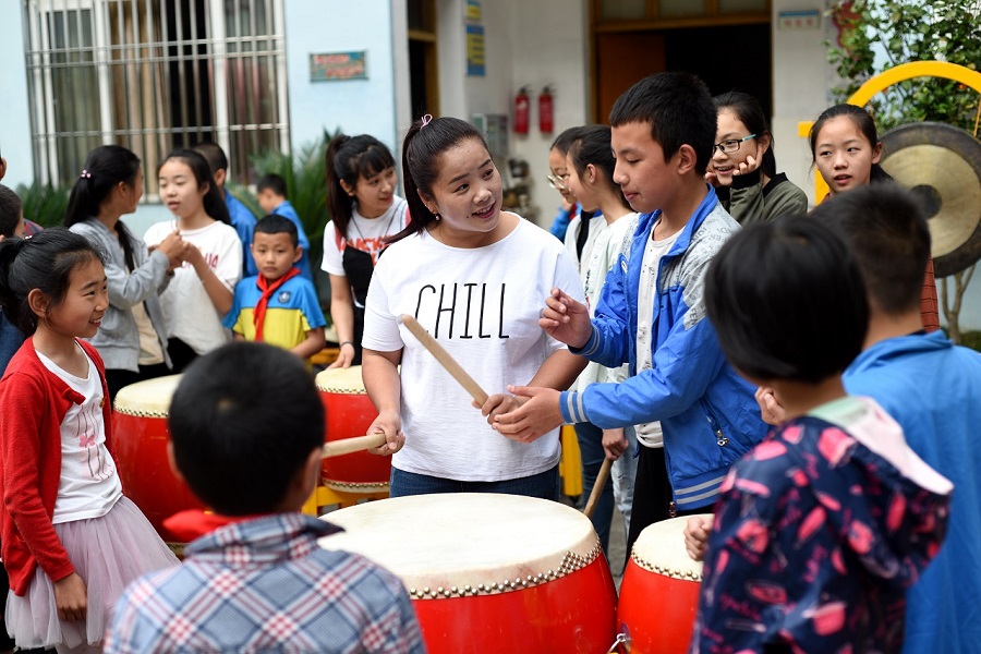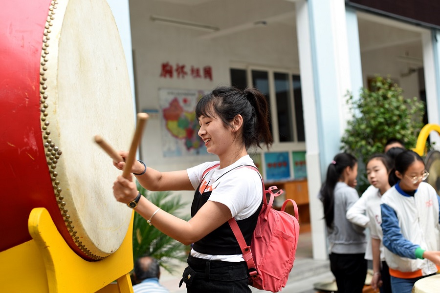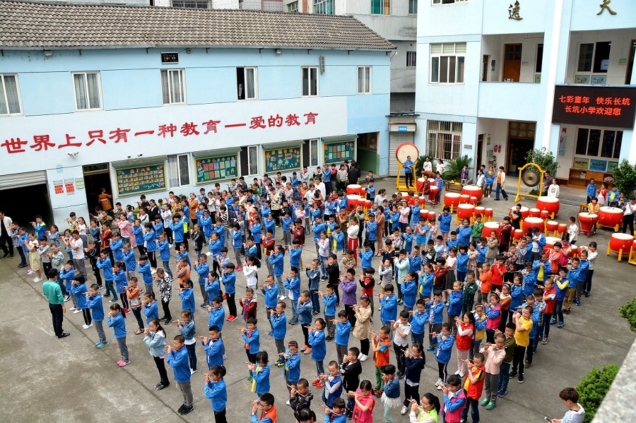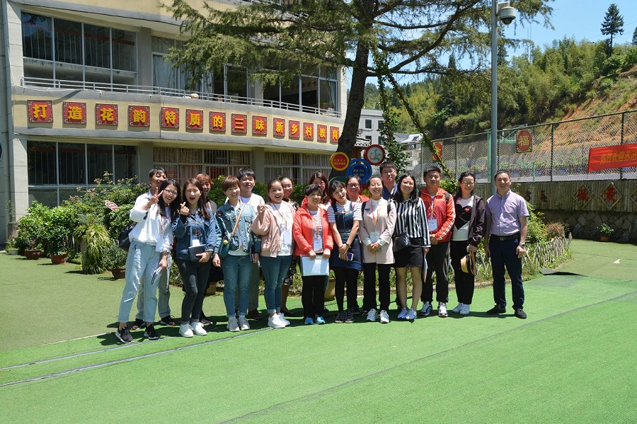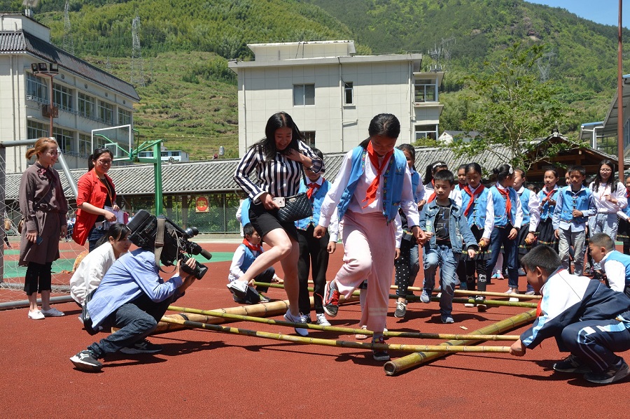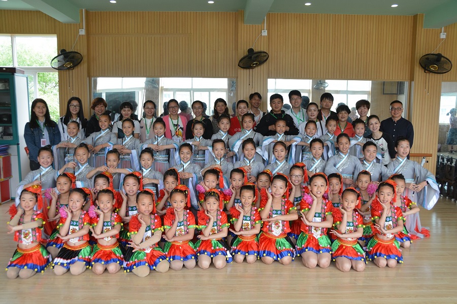 5月4日,在長坑小學和當?shù)亟逃值闹С窒拢蠋焸儊淼禁愃皩幃屪遄灾慰h,分別參觀走訪了當?shù)厝靶《馈钡泥l(xiāng)村學校。東坑小學,一所充滿了畬族文化的鄉(xiāng)村“三味”小學校,所謂“三味”是景寧縣當?shù)厮珜厣l(xiāng)村教育,分別為鄉(xiāng)土味、小班味、家園味。東坑小學秉著“花樣教育,做最美的自己”的教學理念育人育心,學校不僅在校園文化建設結(jié)合了畬族的特點,同時也在大課間活動融入了有趣的畬族色彩。
