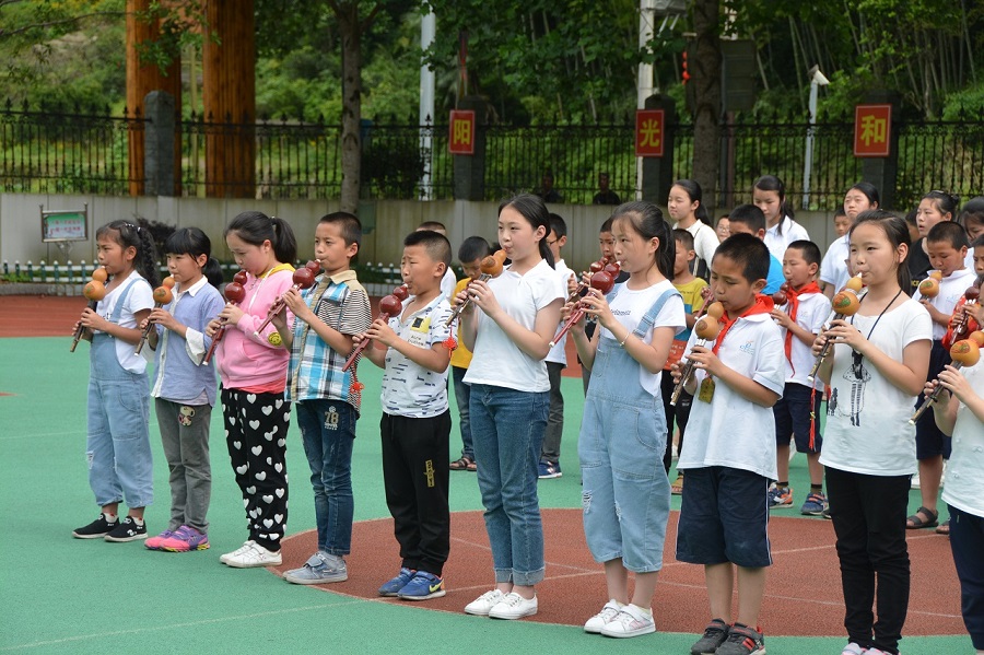 當天的最后一站是大均小學,一進學校們,老師們便被孩子們和全體老師的葫蘆絲齊奏緊緊吸引,一曲《月光下的鳳尾竹》娓娓入耳,悄悄把老師們帶入了校園里的葫蘆文化。該學校以葫蘆為特色,本著吹響葫蘆絲、做強葫蘆娃、做美葫蘆夢的宗旨辦出了豐富多彩的鄉(xiāng)村小學校。
