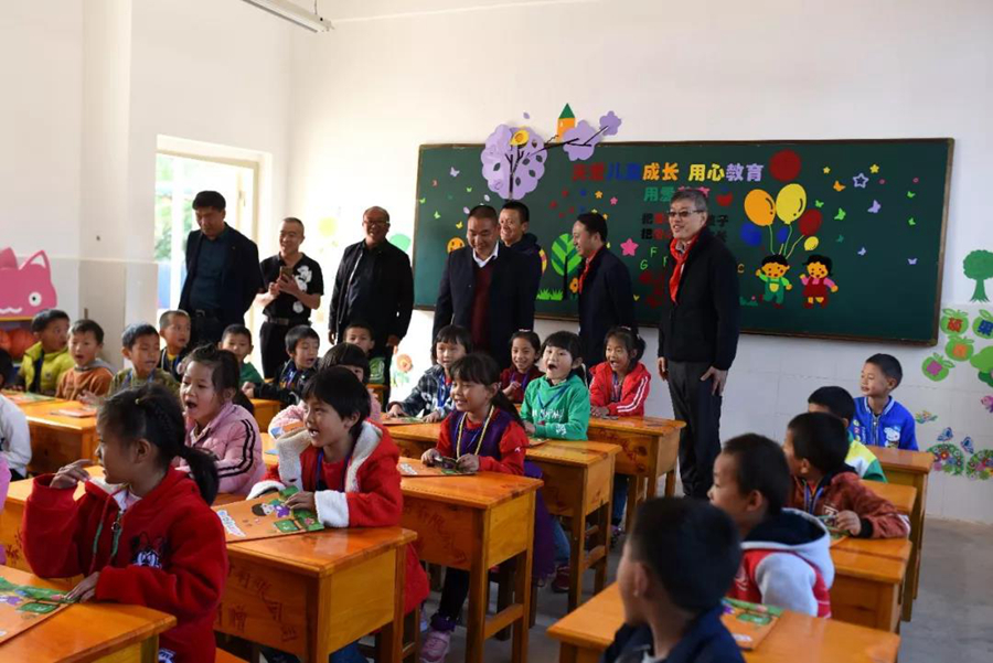 綠樹環抱之中的平達鄉章賽小學,這天迎來了特殊的客人。公司蘇總,品斛堂公司趙董一行,一大早從縣城出發,走過三個小時曲折漫長的盤山公路,來到學校看望孩子們。兩年前品斛堂一次慈善拍賣,促成了公司對章賽小學110萬元的捐資,促成了學校新教學樓和宿舍樓的建設,也促成了兩家企業這次共同的愛心之旅。