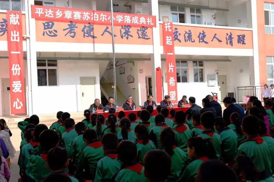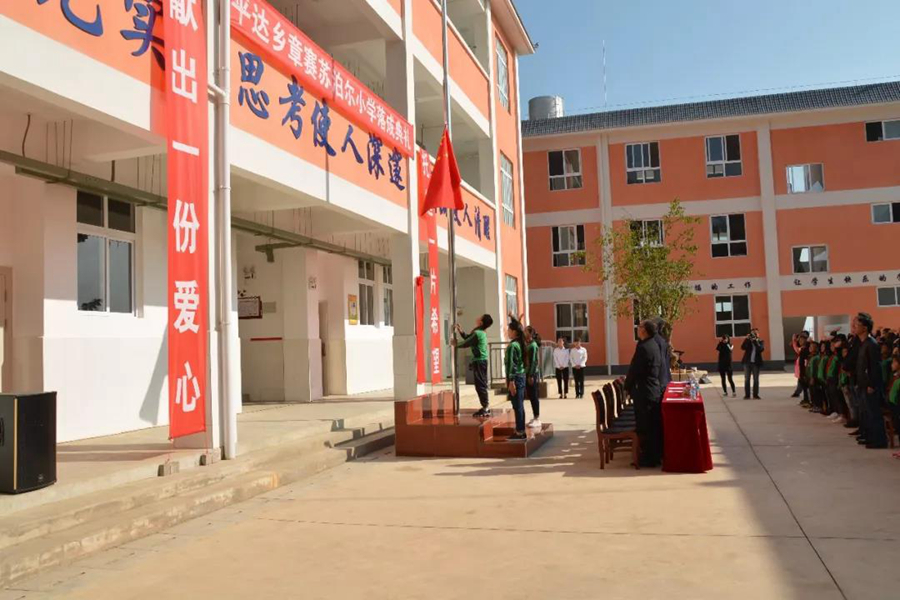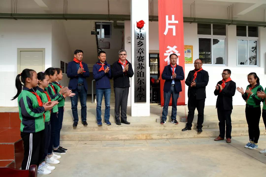 在師生熱烈的掌聲中,蘇總、趙董和徐縣長、余局長等共同為平達鄉章賽蘇泊爾小學揭牌,禮炮響起。這是繼2009年龍新鄉菜子地蘇泊爾小學、2012年平達鄉蘇泊爾小學之后,在龍陵縣內落成的第3所蘇泊爾小學。
