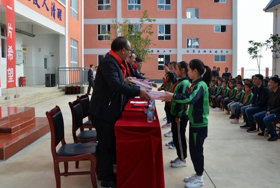 龍陵縣徐副縣長致辭歡迎各位嘉賓。他說道,因為地理環境和交通限制,龍陵縣部分鄉村學校校舍條件還比較落后,有幸蘇泊爾、品斛堂等諸多愛心企業共同關注支持改善校園環境,非常讓人感動,他還寄語孩子們常懷感恩之心,學會自立自強,“窮且益堅,不墜青云之志。”