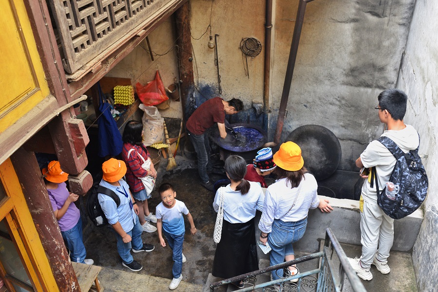 下午的人文行走中,老師們在白族民居中體驗了白族農家菜及三道茶,通過飲食文化了解白族的文化特色,還體驗了非物質文化遺產扎染,在傳統的技藝中感受白族人民的生活方式以及對于美的追求。走進喜洲古鎮以及嚴家大院,感受著白族建筑的雕梁畫棟、斗拱重疊、翹角飛檐、門樓、照壁、山墻的彩畫裝飾藝術絢麗多姿,通過這些建筑充分體現了白族人民的建筑才華和藝術創造力。