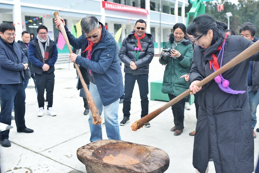 議程的最后,按照苗家的傳統(tǒng),大家一起打起了糍粑。撈里村的老輩子說,這寓意著伙伴們齊心協(xié)力做成好事。