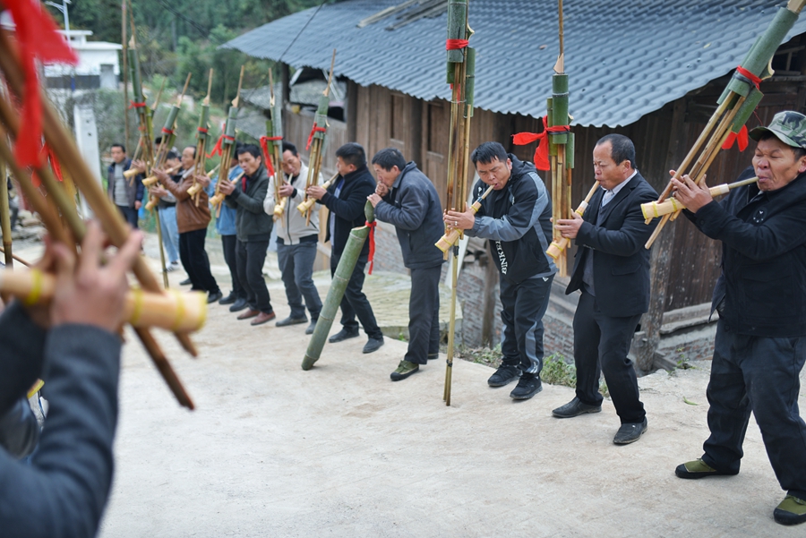 校門口,村民們以苗鄉(xiāng)侗寨最為隆重的禮節(jié),夾道吹起蘆笙,歡迎遠(yuǎn)道而來的貴賓。