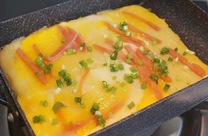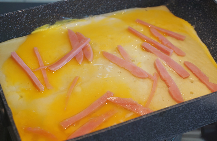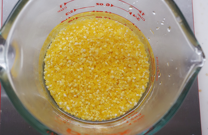【主料】:玉米渣50g、小米20g、水400g、面粉80g、雞蛋2個、火腿肉/培根2片