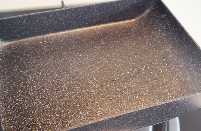 7、把面糊倒入,加入一個雞蛋,攪碎,撒鹽