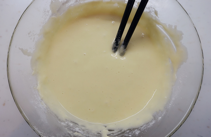 5、取300g米糊,加入80g-90g面粉,攪拌均勻