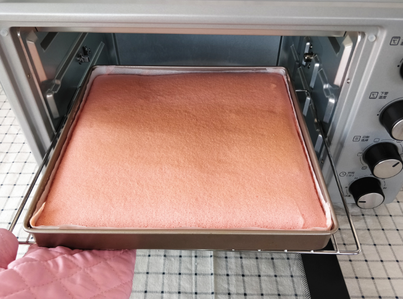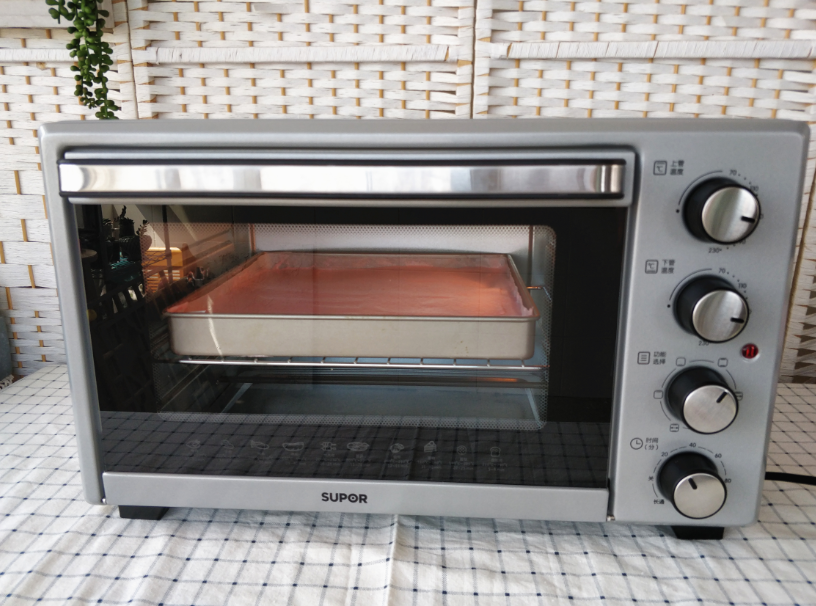 4. 這款蘇泊爾30FK601烤箱并沒有其他小烤箱加熱火力很急的毛病,所以用來烤蛋糕卷的話,表面上色不會很深。但是蛋糕胚因為受熱均勻,膨脹得充分,組織也很滋潤,卷的時候不會干裂。