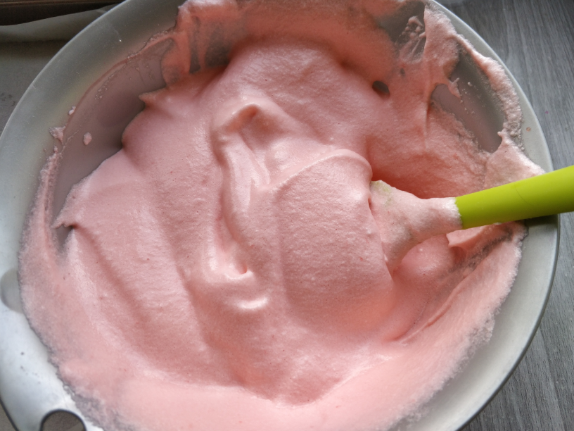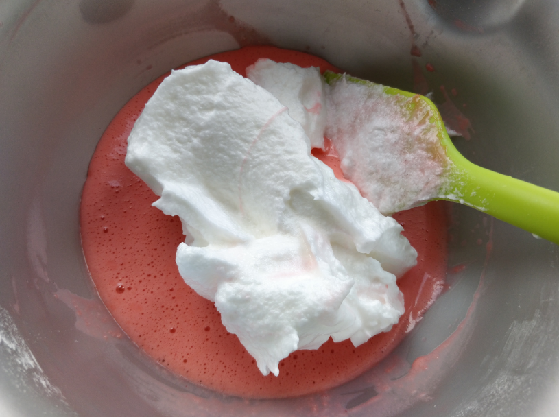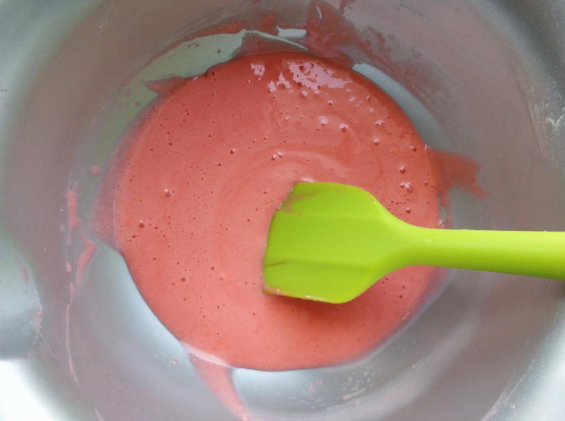 1. 水和食用色素可以用等量的紅心火龍果汁代替,或者在紫甘藍汁中滴兩滴白醋,將其變成酸性的紅色,用來給蛋糕卷上色也是極好的。