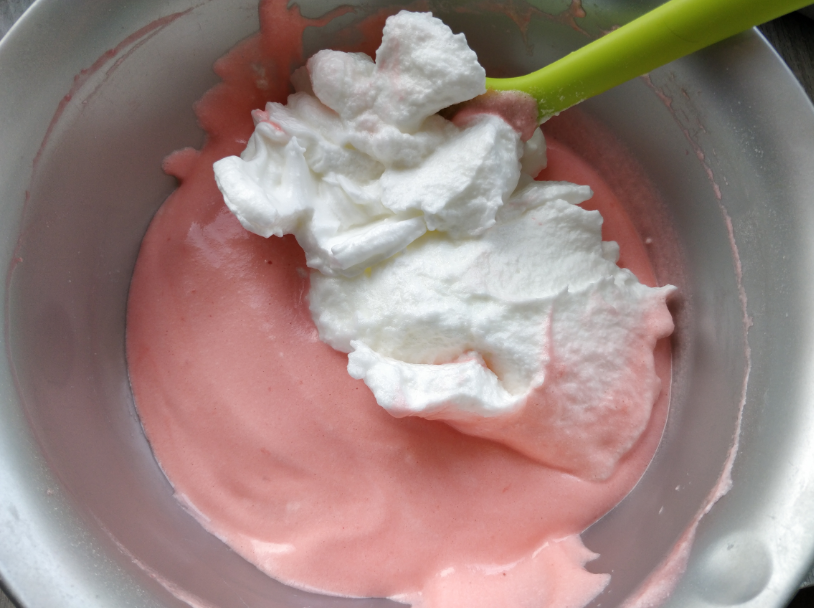 9. 再加入三分之一的蛋清,重復上一步驟。