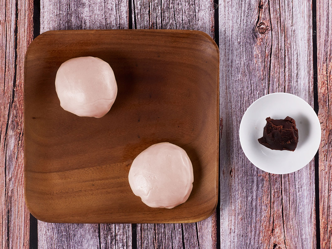 1、將低筋面粉和豬油混合,拌成油酥面團備用;