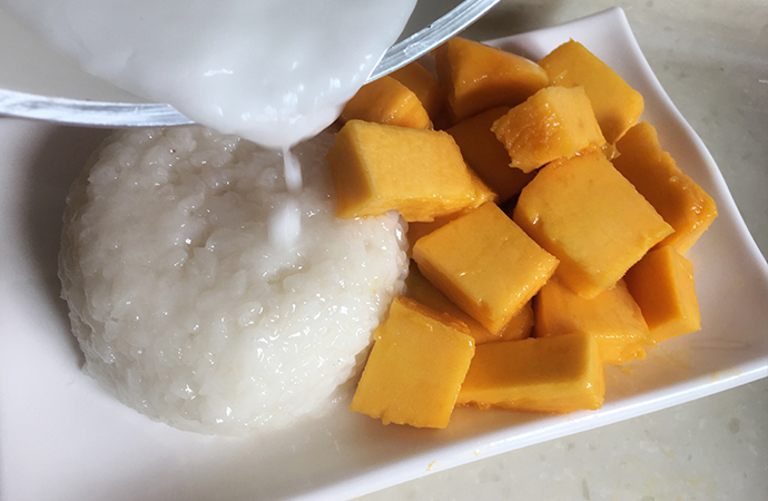 芒果糯米飯是用芒果、糯米制作的一道泰式主食。芒果能降低膽固醇,常食芒果有利於防治心血管疾病,有益於視力,能潤(rùn)澤皮膚,是女士們的美容佳果。芒果糯米飯是用芒果、糯米制作的一道泰式主食。芒果能降低膽固醇,常食芒果有利於防治心血管疾病,有益於視力,能潤(rùn)澤皮膚,是女士們的美容佳果。