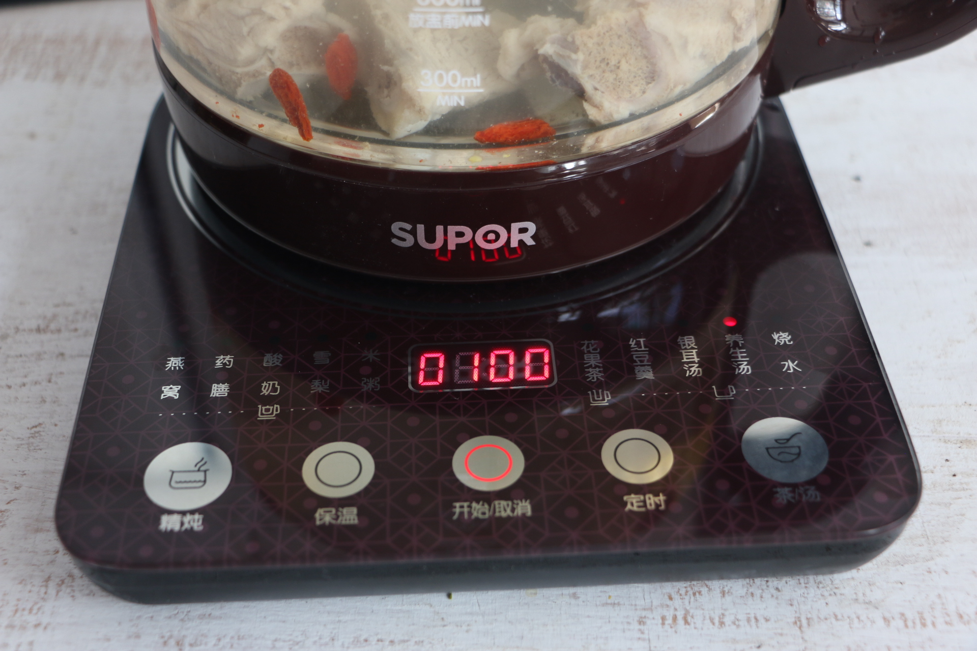 8:養(yǎng)生壺選擇煮燉養(yǎng)生湯功能,1小時(shí)之后,程序結(jié)束,撒少許鹽調(diào)味即可。
