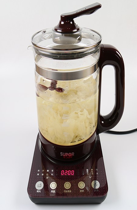 6. 把銀耳、紅棗放入養(yǎng)生壺里,加入1000ml的水。