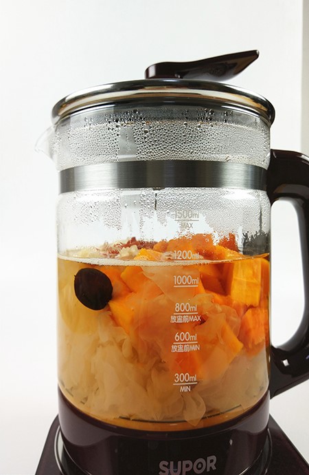 用銀耳、木瓜加上紅棗、枸杞一起燉煮,成就了一道簡單又美味美容圣品哦。這次用了蘇泊爾養(yǎng)生壺來煮銀耳湯,不用擔(dān)心溢鍋,小火慢煮,更能將銀耳的膠質(zhì)煮出來,利于人體吸收。