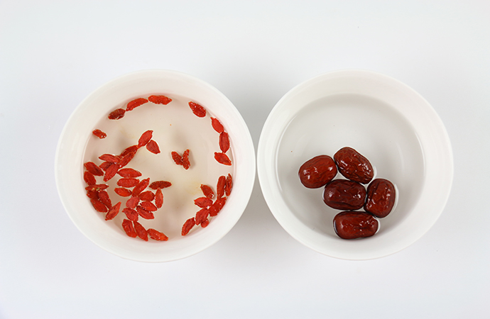 4. 枸杞、紅棗分別加水,清洗干凈。