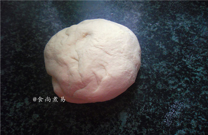 3.將面團在案板上揉幾遍,再次放入盆中,蓋上保鮮膜靜置餳發30分鐘左右;