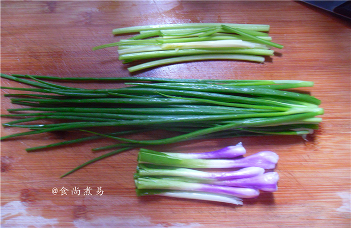 5.小蔥、芹菜洗凈、蔥頭和蔥葉分開