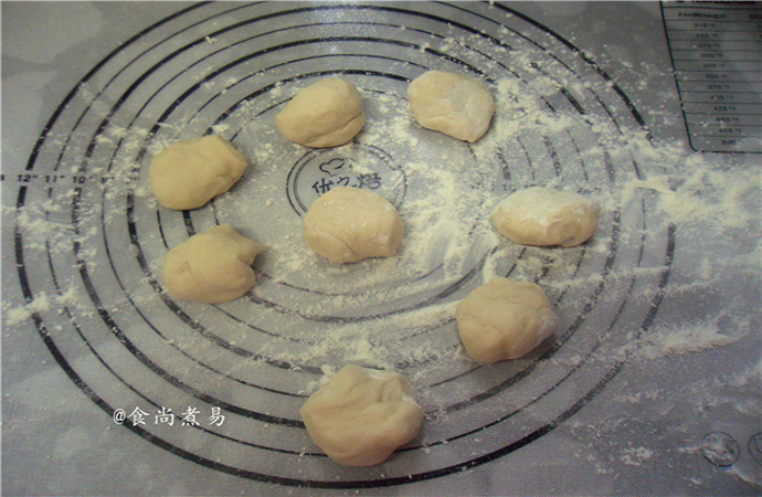 10.取出面團(tuán)在案板上再揉幾遍,排氣整形成長(zhǎng)面條,切開若干個(gè)大小均勻的面劑子