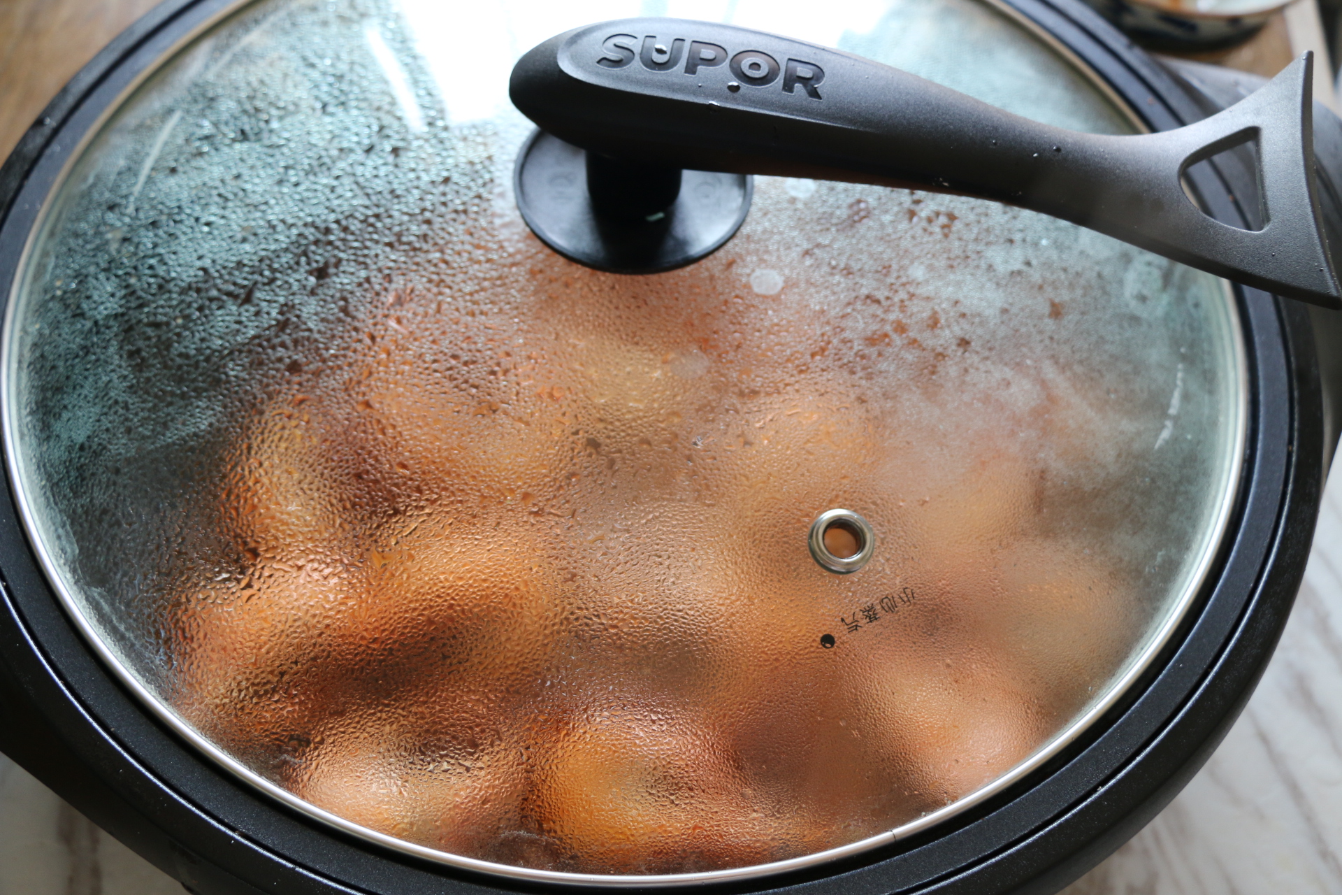8.加入半小碗水,選用大火檔,蓋上鍋蓋燜2分鐘,收汁