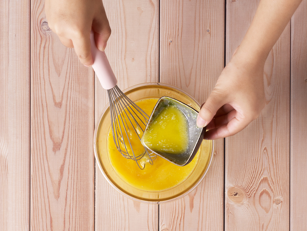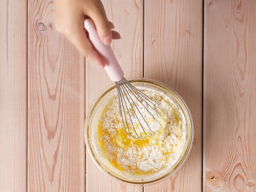1、糖粉、軟化的黃油放入容器,用打蛋器充分攪拌均勻,加入牛奶和鹽,用打蛋器低速攪拌均勻;