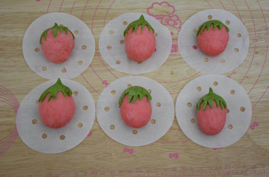 面粉100g 紅絲絨液幾滴 抹茶粉2g 細砂糖10g 酵母1g 玉米油2g 牛奶65g