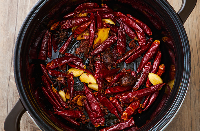 】:香油2湯匙、郫縣豆瓣20克、白芝麻10克、精鹽5克、糖5克、生抽2湯匙、陳醋2湯匙、香料(干辣椒、八角、桂皮、草果、花椒、丁香)少許、蔥姜蒜少許。