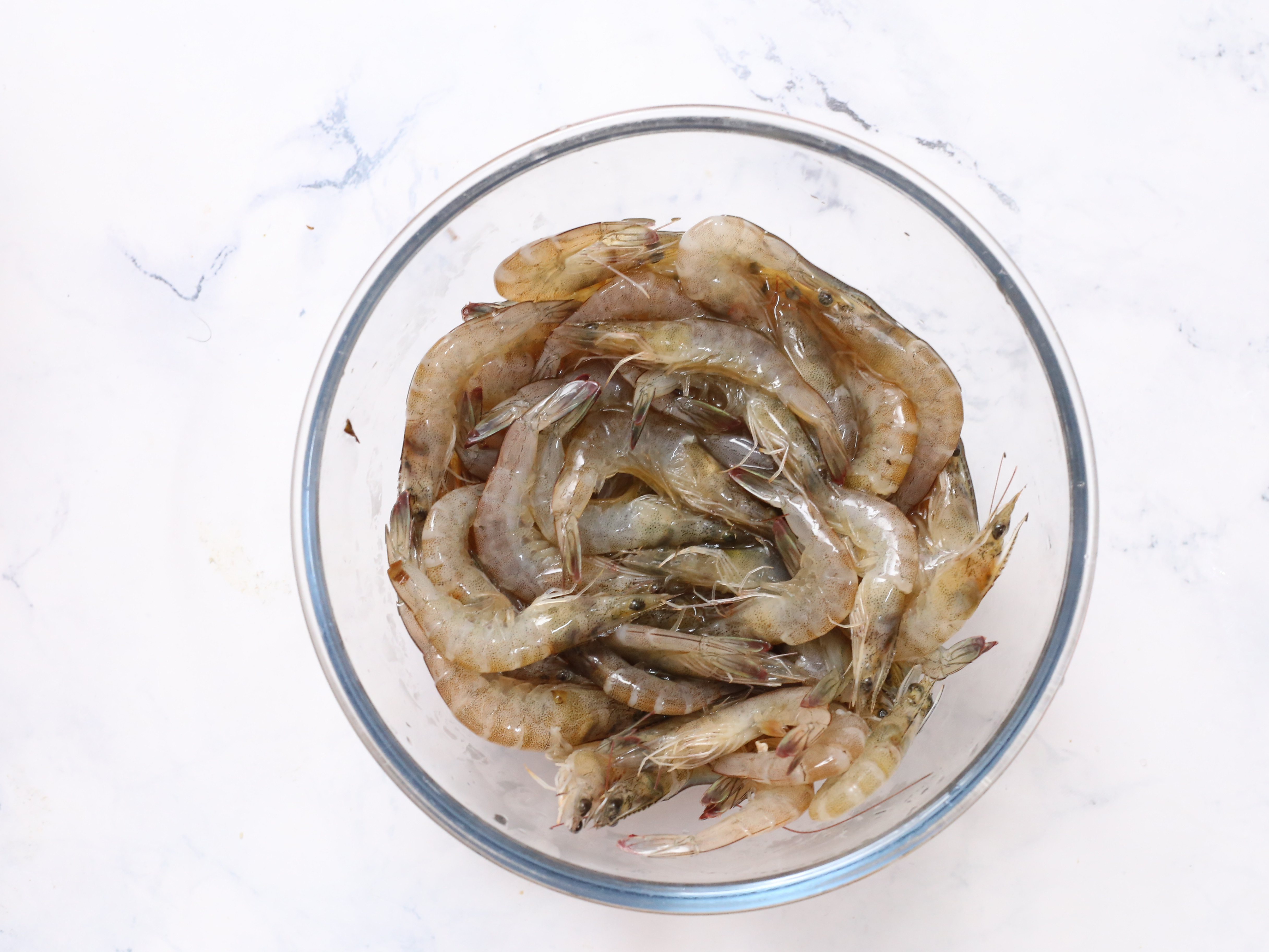 4.泡好的鮮蝦用廚房紙巾擦干凈水分。