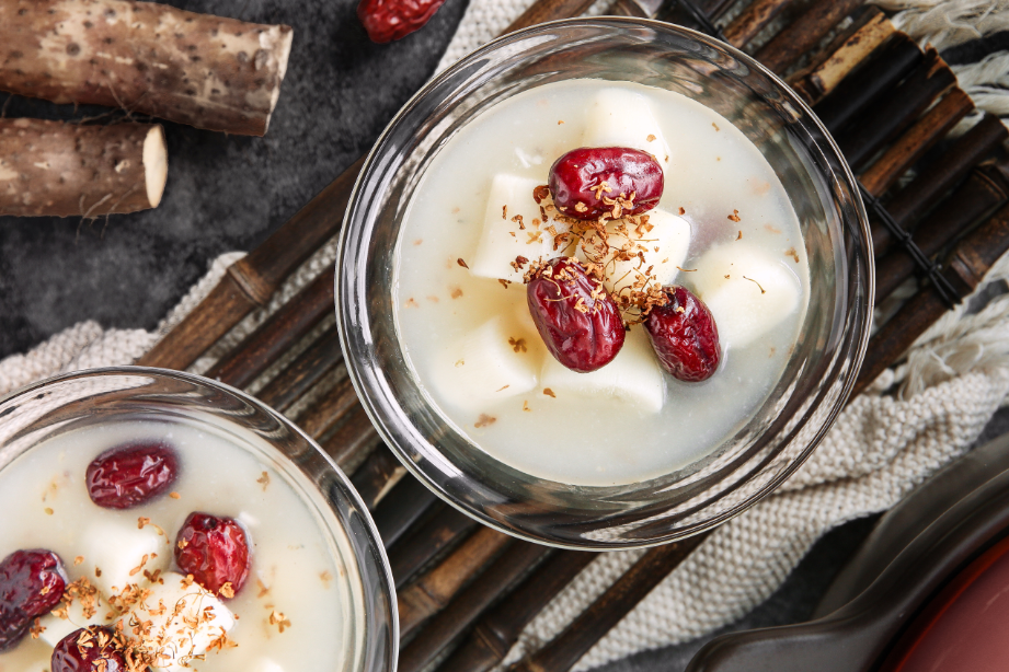 鐵棍山藥 2根 蜜棗 15顆 干桂花 5克 水淀粉 適量 冰糖 適量