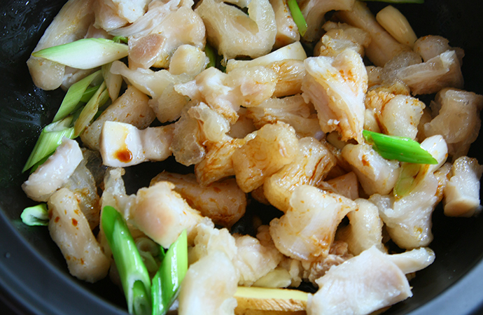 【配料】:食用油3湯匙、醬油2湯匙、陳醋1湯匙、料酒1湯匙、鹽1湯匙、蔥、姜、大蒜少許、白糖、清水適量