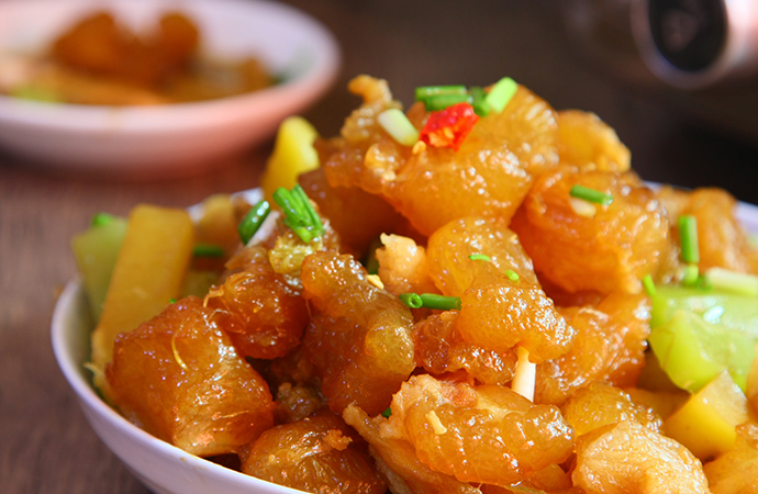 【主料】:鮮牛蹄筋350克、萵筍100克、土豆100克