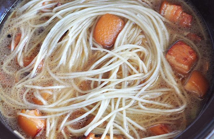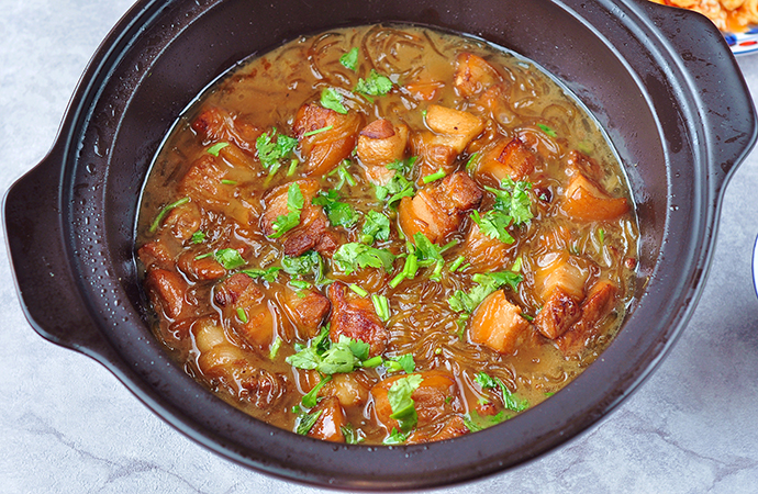 4、烹飪時間剩余15分鐘時放入泡軟的粉條繼續燜煮(湯少的話,可以補一些熱水)