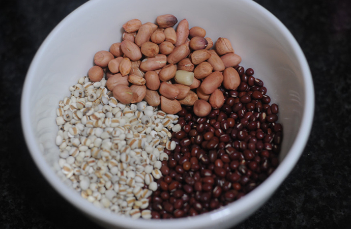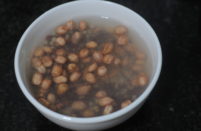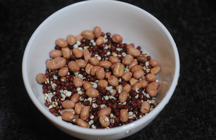 【輔料】:花生米1把、紅豆1把、清水半鍋、蜂蜜適量