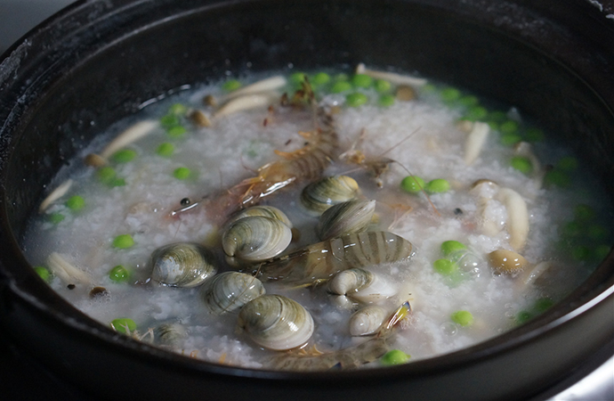 潮汕的咸粥分二種,一種是泡粥,一種是砂鍋粥。二款都極有味,我以前是常換著吃,配料呢更是豐富的不要不要的,有蠔仔版,鮑魚版,青蟹片,什錦版,生魚粥。。。。花樣極多,這會(huì)想起來都是口水直流呢。