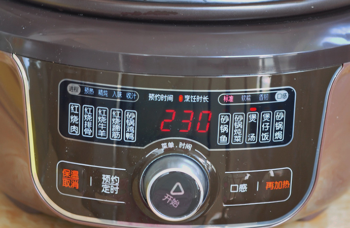 4、選擇煲湯程序,先燉煮15分鐘,米湯略顯稠