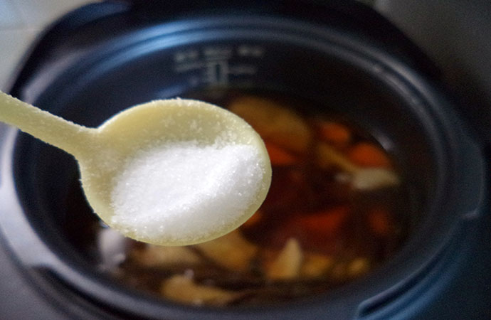茶樹菇洗干凈,用溫水泡軟,然后用泡菇的水煲湯,更添香濃