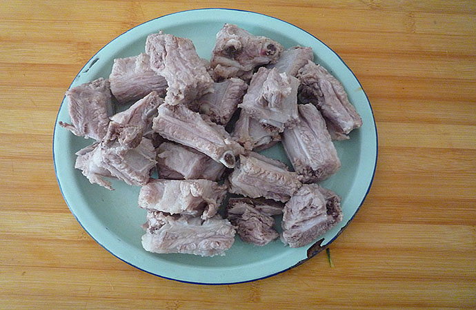 1.豬小排洗凈,鍋中放水燒開,下豬排汆出血水,水沸后撇去浮沫