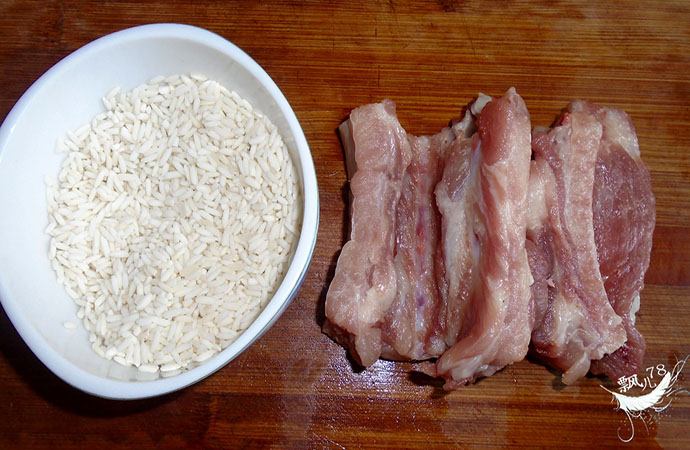 6.泡好的糯米瀝干水分,加入適量鹽和雞精拌勻