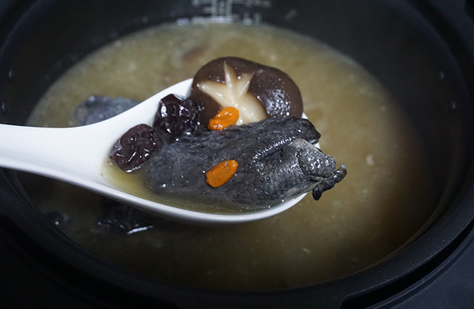 4.用蘇泊爾鮮呼吸鐵斧快速電壓力鍋來煲湯,傳統的烏雞煲湯可是需要2-3個小時,而這款壓力鍋,壓力可調節,還有快速脫骨按鈕,不同食材、多種烹飪方式,隨意搭配