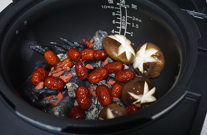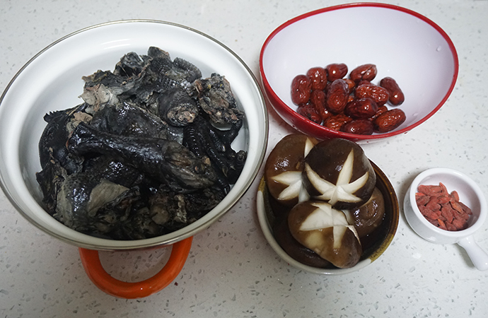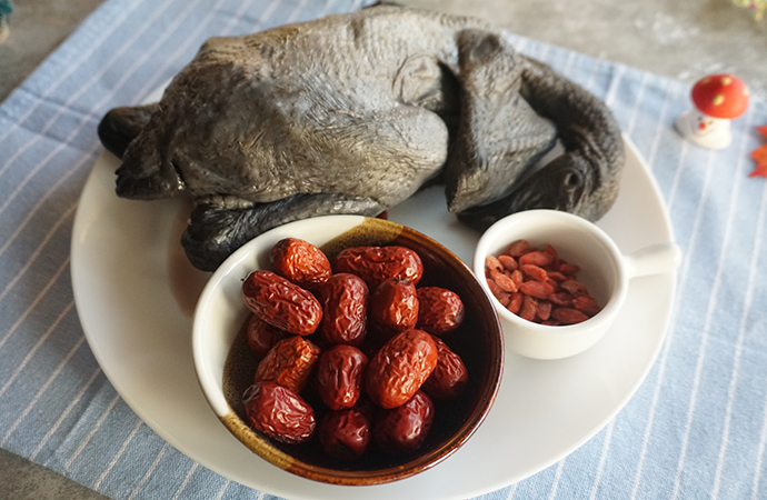 1. 準備好需要的食材,以烏雞、枸杞和紅棗為主