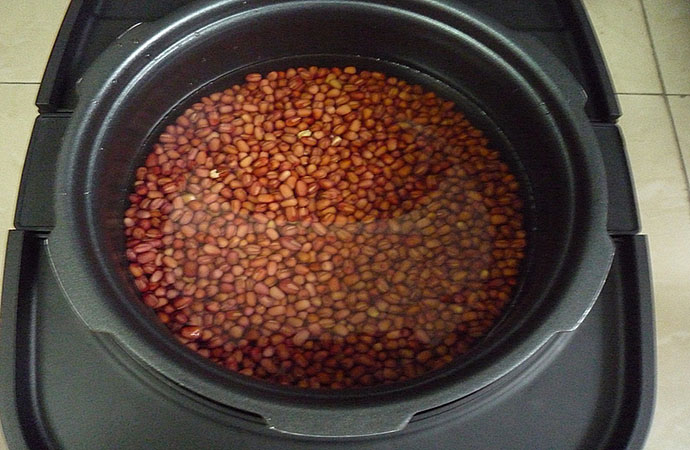 2. 把泡好的紅小豆放進電壓力鍋中,倒入清水沒過紅豆一指節(jié)即可