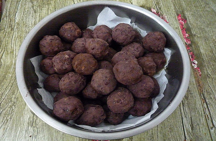 6.做好的紅豆餡可以搓成球也可用模具壓成各種形狀