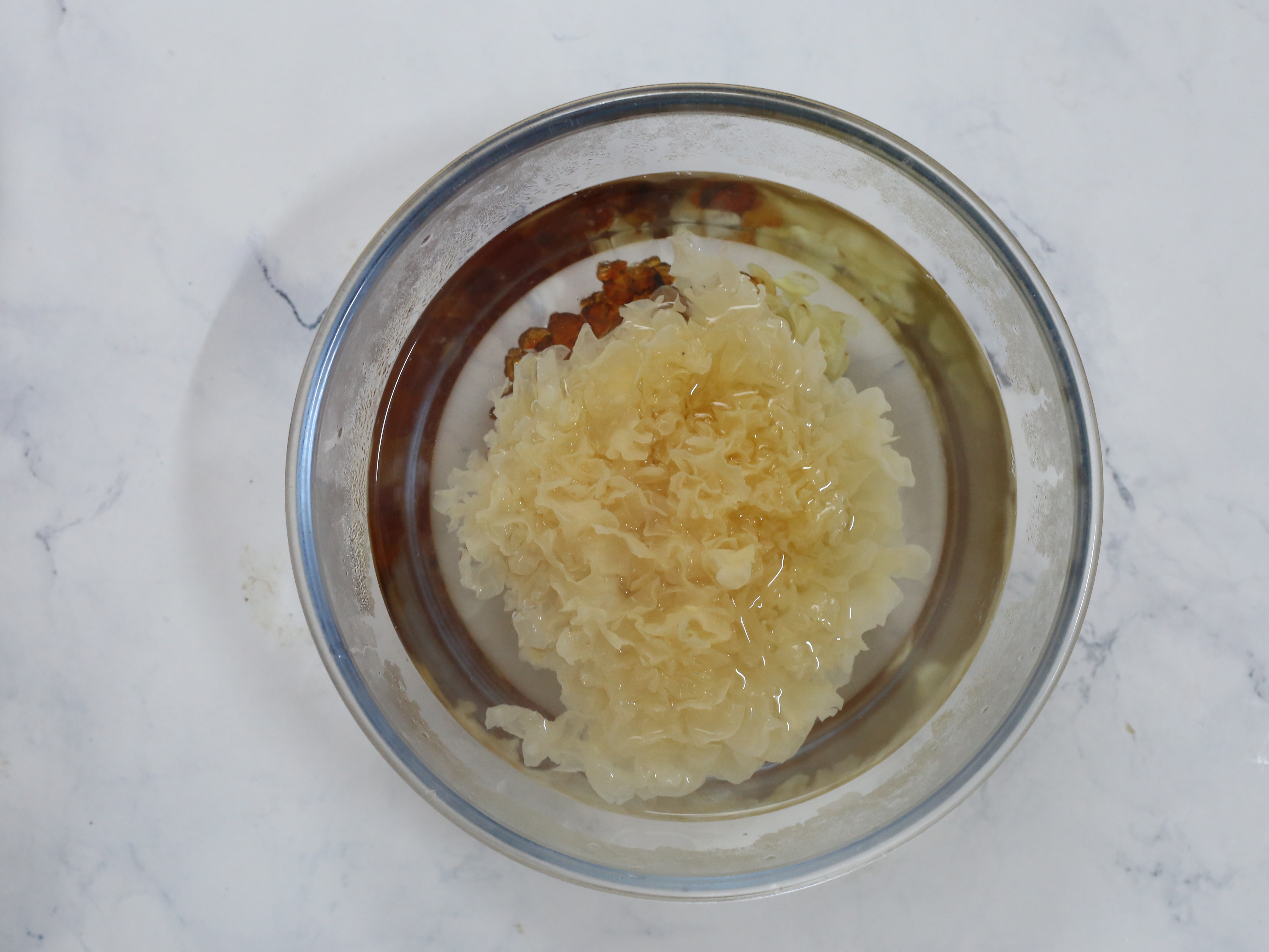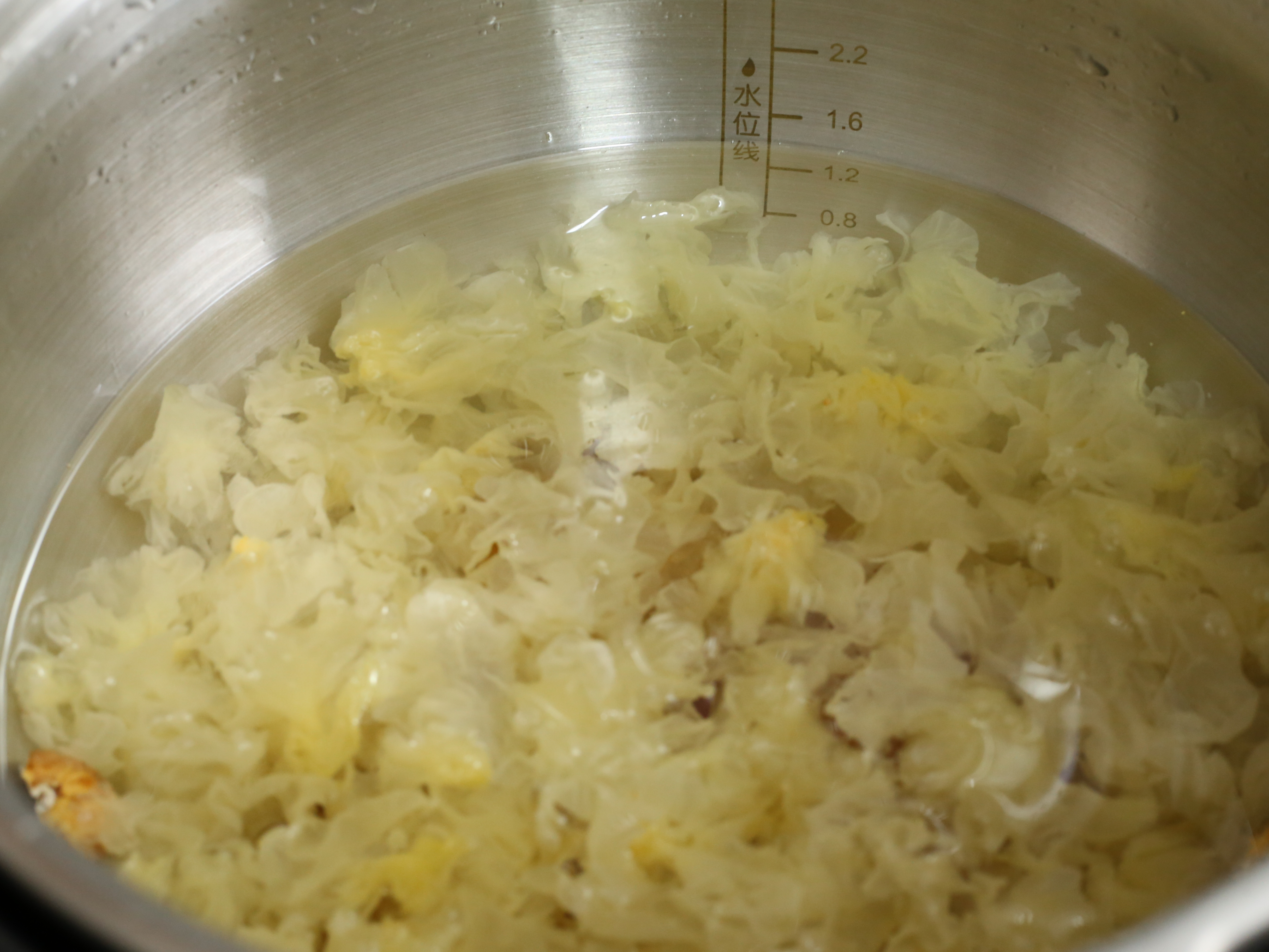 2.銀耳、桃膠和雪蓮子用溫水浸泡2個小時以上。